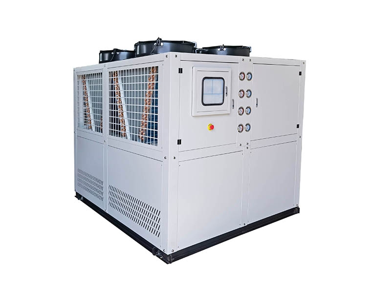 采用高效閉式循環(huán)殼管式換熱器作為蒸發(fā)器,并使用風(fēng)冷式冷凝器——銅管套鋁翅片,配以大風(fēng)量風(fēng)冷風(fēng)扇。