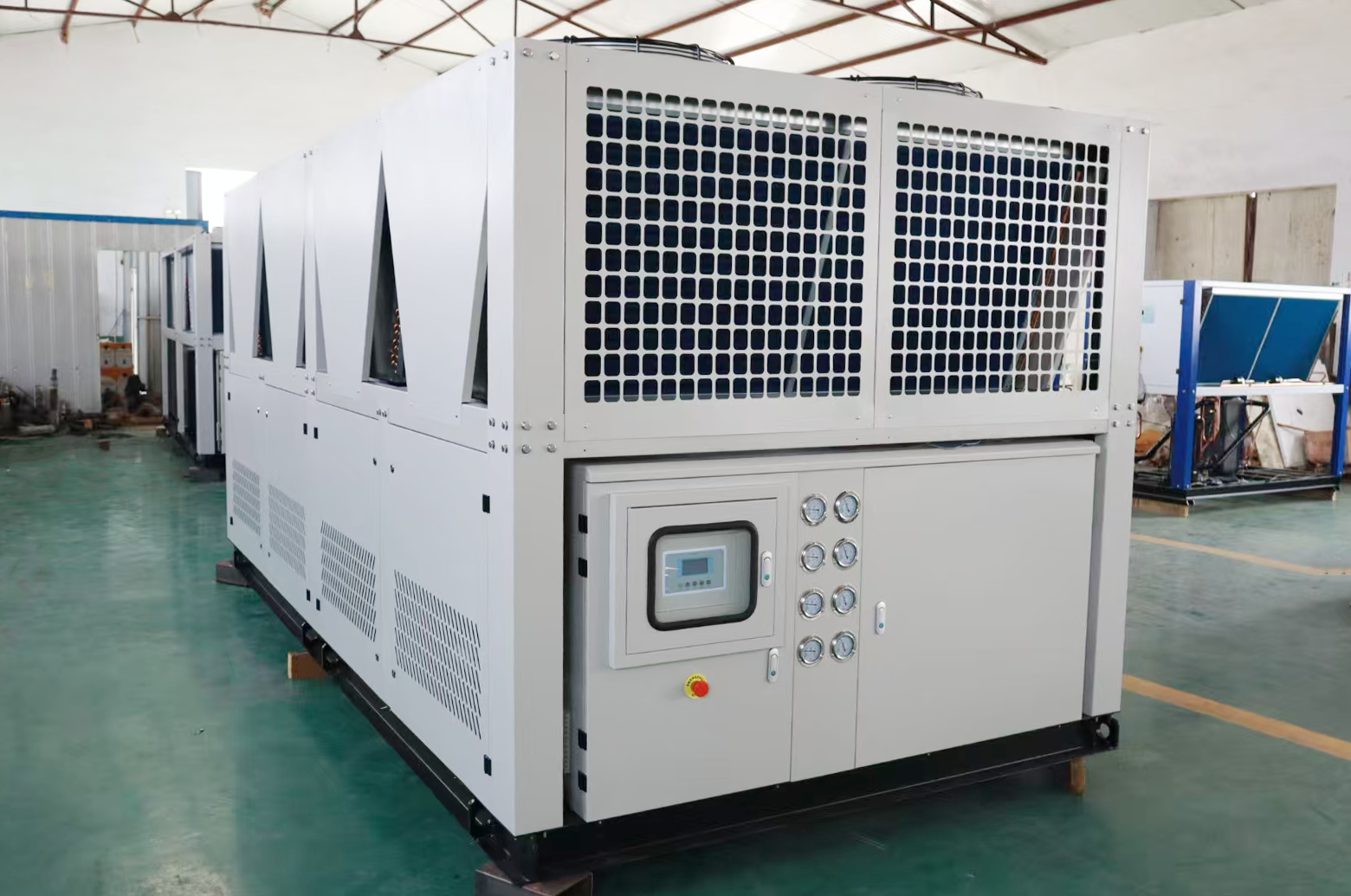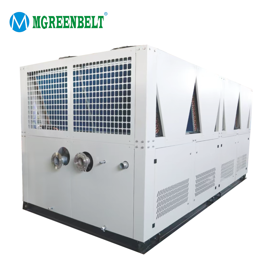 采用高效閉式循環殼管式換熱器作為蒸發器,并使用風冷式冷凝器——銅管套鋁翅片,配以大風量風冷風扇。